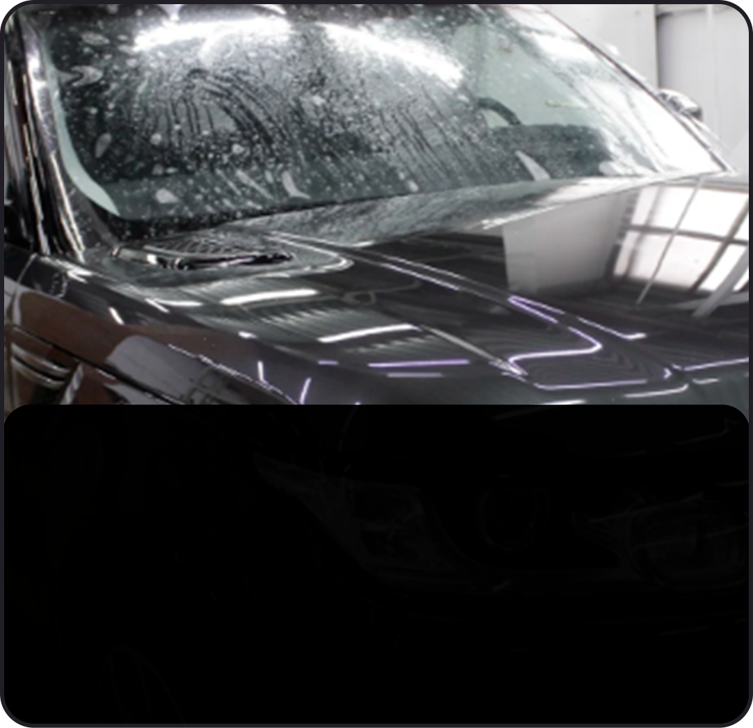 На первом этапе специалисты проводят первичную обработку кузова автомобиля бесконтактным шампунем, который отделяет загрязнения от поверхности кузова.
